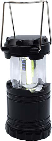 Pop up cob lantern with LED lighting to brighten your way in the dark. Black and gray. 4"