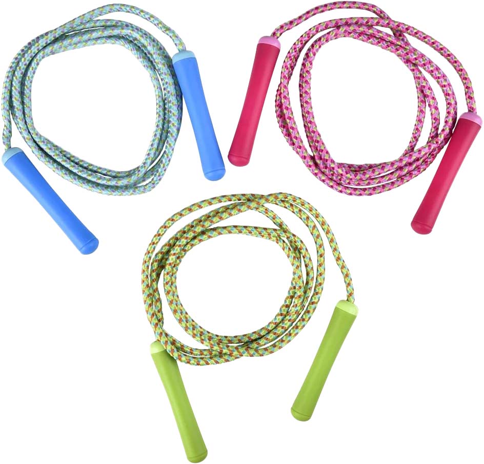 Large jump ropes are great for active play and exercise. Plastic Handles. Assorted colors.