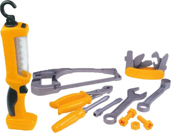 This deluxe set is loaded with lots of great tools to keep little builders busy! Each tool is made of rugged hi-impact plastic; set includes a working LED light with hook for hanging, multi-tool, saw, nuts and bolts, pliers and wrenches. Ages: 3+