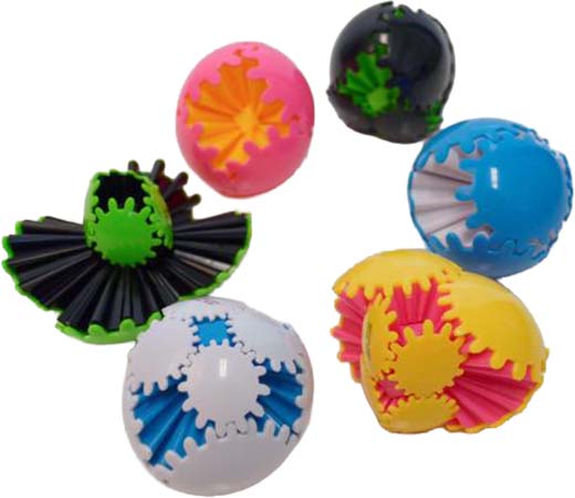 Spin this ball to move the gears and create new shapes. Great way to kill stress or time. Measures about 3 inches in diameter. Assorted Colors.