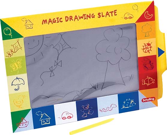 The perfect drawing pad for the car! The magic drawing slate provides endless drawing fun! Draw with the special pen, then simply pull the handle out to clean the slate and start again! 10" x 7"