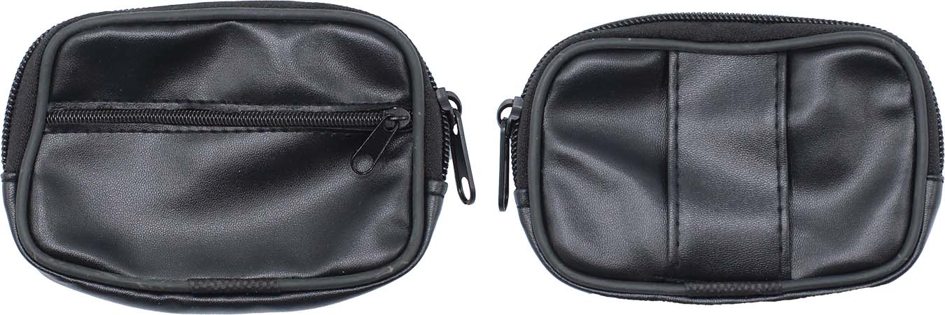 Leather coin purse with a belt loop and 2 zippers. Black. 5" x 3.5"