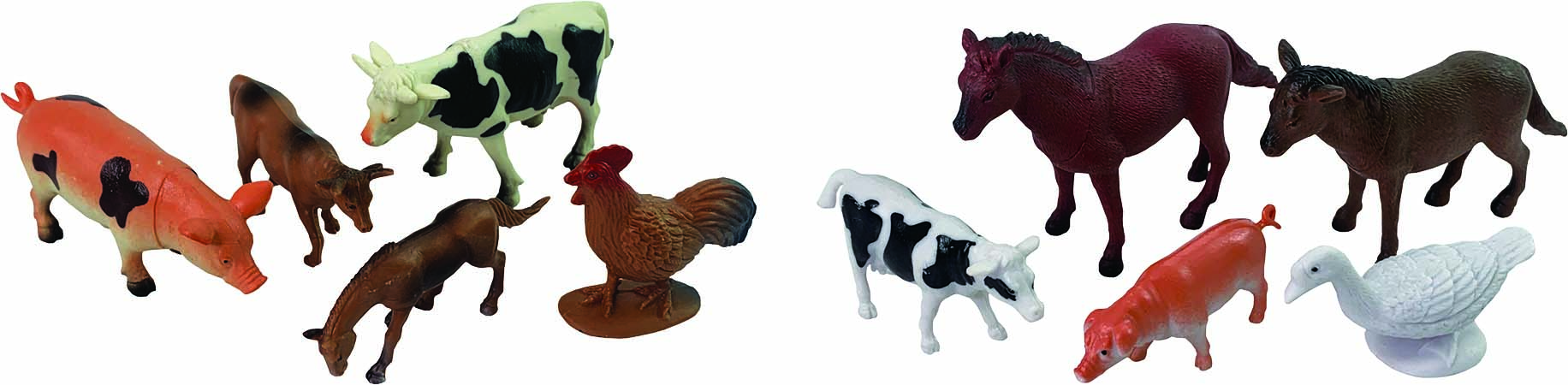 This animal playset has 10 pieces. Includes a variety of adorable realistic animal figurines and props. 1-3" tall.